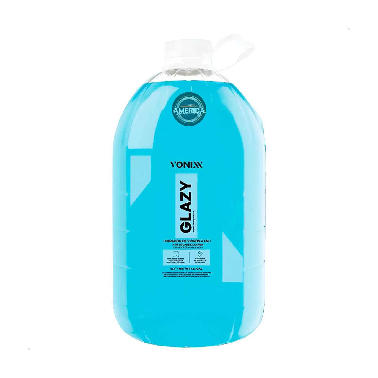 GLAZY é um produto 4 em 1, de alta tecnologia, desenvolvido para vidros em geral, que limpa, protege, condiciona e atua como redutor de riscos. O produto contém polímeros especiais que reduzem o atrito no vidro, diminuindo as chances de riscos causados por limpadores de para-brisas e movimentações dos vidros laterais. Deixa um toque liso e aspecto de vidro novo