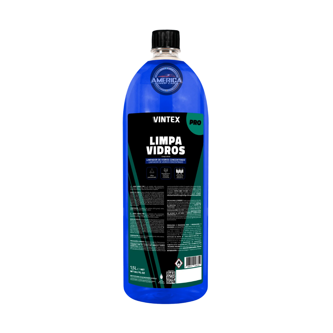 O Limpa Vidros VINTEX PRO é um produto ultra concentrado, formulado para limpar, remover manchas, desengordurar e desembaçar vitrines, vidros de automóveis e espelhos.